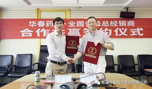 新疆華春生物藥業(yè)股份有限公司(簡稱華春生物藥業(yè))與第二批全國省級總經(jīng)銷商合作協(xié)議簽署儀式,于8月24日在新疆華春投資集團舉行。新疆華春投資集團董事局主席兼總裁、華春生物藥業(yè)董事長李成功先生,分別與江蘇龘龍醫(yī)藥科技有限公司研發(fā)負責人張永昌(江蘇省代)、北京麥爾信康科技發(fā)展有限公司總經(jīng)理王慶進(北京省代)、河北思平生物醫(yī)藥科技有限公司總經(jīng)理高春雨(河北省代),簽訂了《“參葛補腎膠囊”推廣服務(wù)協(xié)議暨省級總經(jīng)銷協(xié)議》。華春生物藥業(yè)相關(guān)技術(shù)與管理人員參加簽署儀式。