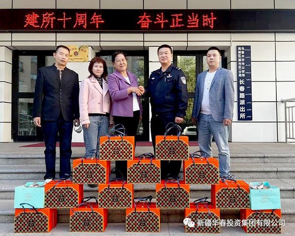 在中秋、國慶雙節(jié)即將來臨之際的9月28日,新疆華春投資集團董事局主席兼總裁李成功先生特地委派總裁助理尚淑梅一行前往烏魯木齊市長春路派出所、鉆石城派出所和錦城社區(qū)、昆明路社區(qū),為長期奮戰(zhàn)在基層一線的民警和社區(qū)工作人員送去了節(jié)日慰問品和祝福,對基層一線民警和社區(qū)工作人員為轄區(qū)營造良好營商環(huán)境保駕護航做出的貢獻,表示衷心的感謝和崇高敬意。